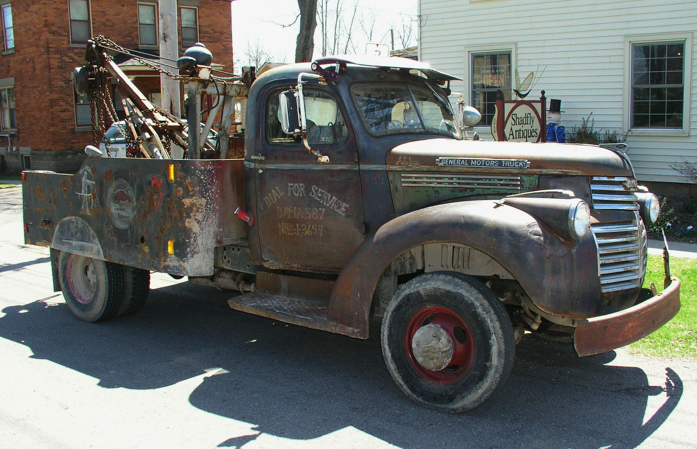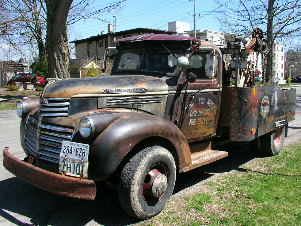“Glad to. It’s a 1941 Chev one ton which I have built onto a 1978 chassis. It’s got the original 1978 350 V8 in it. It took me a year and a half to put it together, which was as fast as I could go because I needed it for my scrap metal business It’s a working truck you see. I use it every day and drive it everywhere. . It weighs 8,000 lbs, and I put 17 leaf springs in her on both sides so I know she can lift anything. I had one of those car carrier type rigs before but the government demands so many damn permits for those things now that it’s just too much bother and expense to have one. I work alone and there’s so many guys in the metal business now that I have to keep my costs low.