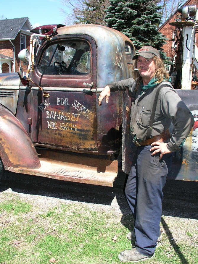 One of things I love about living in Port Dover is that there is no lack of authentic characters. It’s a beautiful sunny day and I was working out back in the garden when I heard the door buzzer go. When I came around the corner I saw this parked right out in front of Shadfly, facing the wrong way, right in front of the no parking sign. Hmmm, I went inside to greet the owner. I found a pleasant man with his young daughter quietly studying a hand made merry go round which had come from nearby Haldimand county made from an old chicken feeder. “That’s my neck of the woods” the man offered. “Oh, so you are a local” I replied. “That’s a pretty sweet old truck you’ve got going there. Could you tell me about it.” We exchanged names and pleasantries, and Tod went on to say,