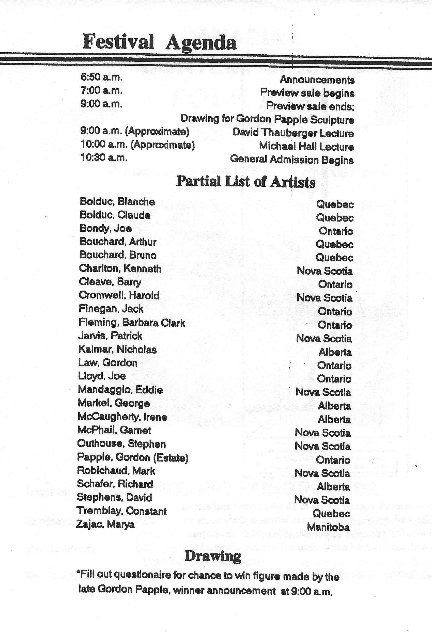 Back on Sunday, June 26, 1994, my wife Jeanine and I as Old Church Trading participated in an ambitious, extensive, and ultimately one time special event that was, and remains the largest and most exciting folk art festival ever to take place in Ontario, if not all of Canada. Acknowledging here the annual Nova Scotia Folk Art Festival. It included 2 lectures, displays by a half a dozen folk art dealers, and the work of about 25 Contemporary Canadian Folk Artists, many who were in attendance. It all took place on one glorious summer day from 7 a.m. until 7 p.m. at the Paris Ontario fairgrounds. It was an extraordinary opportunity for collectors, dealers, and folk artists to interact and network and to honor and support Canadian Folk Artists. I remain enormously grateful for having been included in this great event; and we sold a lot of folk art too.