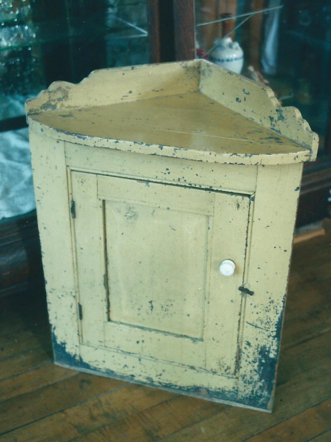 Original Paint , defined loosley as the first surface applied to a finished piece of furniture , whether it be colour , varnish or shellac , or , any combination . Untouched ( never monkeyed with or overpainted ) Original paint is the most desirable and most rare and difficult to find . Some colours are more desirable than others and often garner more money , blues , yellows etc ….. . Original paint may also be defined as “scraped to original paint ” or ” overpaint removed ” . This can be done with heat , chemical or mechanically removing successive coats to get back to the first coat . 99.9 % of the time , this leaves no surface , simply colour .
