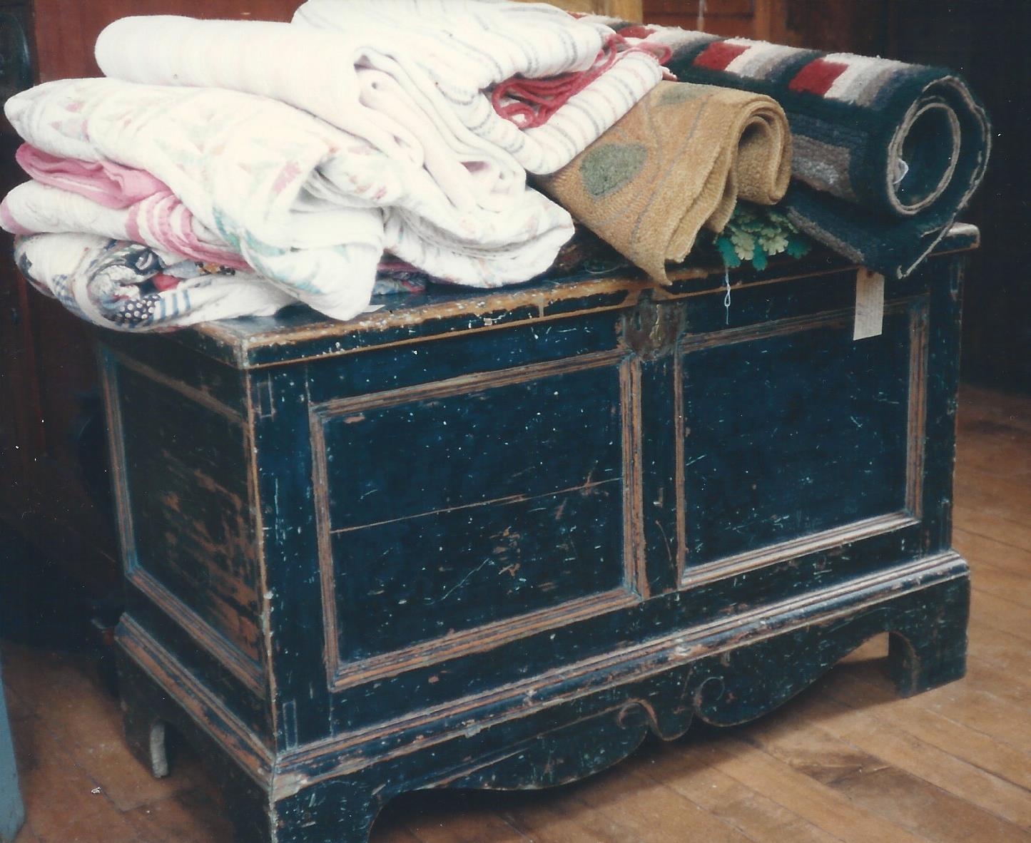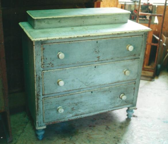 Then when in the early eighties we started to make a living by selling antiques, with a truck and a strong back I began buying lots of antique furniture at local auctions. At the time, the biggest part of the market was for stripped furniture in light wood. You could buy a chest with several coats of paint, strip it down to the wood and refinish it, and make a good buck for your trouble. I didn’t mind doing this in ninety nine percent of the cases, but every once in a while I would get a piece which as you stripped it down, would reveal a beautiful colour under all the other layers. Instinctively I would try to save this paint.