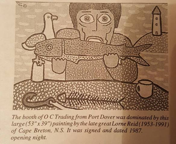 Later that day, which was set up day, I was able to finish my work and have time to look at some of the other booths. I had brought a few dozen photos of work by Canadian folk artists in case there was some interest with the U.S. dealers. Mostly, there was not. Some of them were downright rude. But when I showed them to Phyllis Kind, after talking for an hour or so on various topics, she looked and passed on them all, but stopped when she came to Billy Orr. “Now this is interesting.”