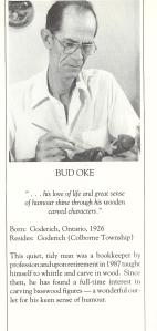 After a severe illness in the mid 1970’s he retired from several of his enterprises and began to carve some of the birds he saw around the Long Point marsh; ducks, herons, shorebirds, and song birds. Also fish, rabbits and turtles. Eventually he added a few domestic animals such as cats, dogs and pigs. People started to come to his place on the marsh and buy, and word got around, and by 1977 he had his first exhibition at the Lynnwood Arts Centre in Simcoe Ontario. This was followed by shows in Toronto at the Merton Gallery, Claude Arsenault’s “Home Again” folk art gallery, and the Harbourfront Community Gallery. Some of his pieces were included in a travelling show sponsored by the Ontario Craft Council. In 1989, shortly before his death, his work was the subject of a one man show at the Durham Art Gallery. This last show included a catalogue.