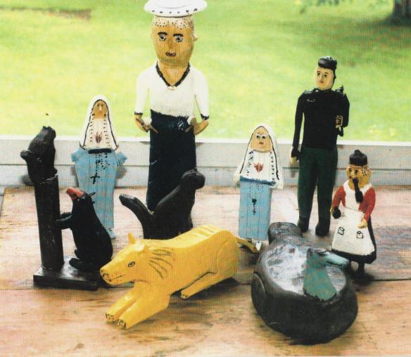 Dandurand’s carvings are represented in major public and private collections of Canadian folk art. I am uncertain if Rene continues to live in Valleyfield, Quebec. It was suggested to me a couple of years ago that he had passed away, but as yet I have been unable to confirm or deny it. If anyone knows, please let me know and I will amend this article. Thanks.